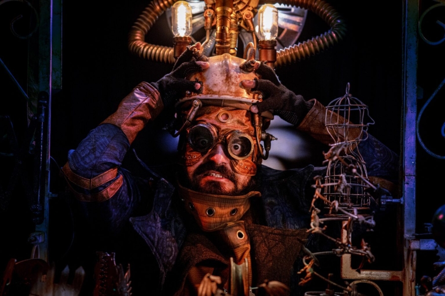 A obra propõe uma travessia cênica através dos limites do real, entre sonho e vigília, indivíduo e coletivo, memória e manipulação. Com dramaturgia fragmentária e simbolista, onde a narrativa se revela por meio de imagens, estados rituis e interações diretas com os espectadores. O espetáculo se desenrola como um teatro de imagens e sensações, entre sombras, engrenagens, máscaras, bonecos e projeções.
