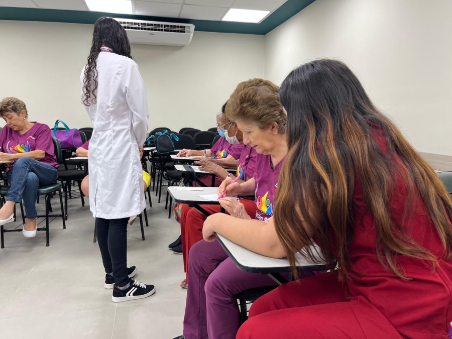 Também presente na atividade, com foco em práticas que movimentam o corpo, o estudante do curso de Educação Física, Pedro Hudson, reitera a importância do exercício físico para melhorar a saúde. “Nessa faixa etária, movimentar o corpo continua sendo fundamental porque vai preservar as articulações, ajuda na massa muscular, funcionalidade do corpo e, assim, faz com que tenhamos uma longevidade ao longo da vida. Além disso, melhora aspectos cognitivos e físicos. É a primeira vez que participamos do projeto e é uma oportunidade muito boa para aplicar na prática os ensinamentos que temos apreendido no curso”, endossa.