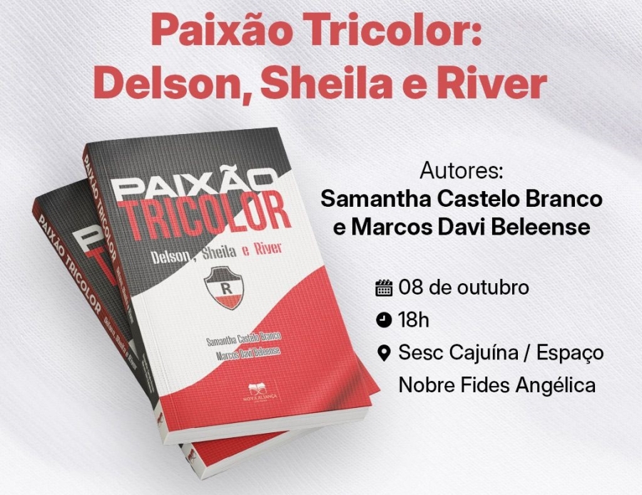 O livro “Paixão Tricolor: Delson, Sheila e River” celebra a trajetória de Delson e Sheila Castelo Branco, casal que se tornou símbolo de dedicação ao River Atlético Clube e à história do futebol piauiense. A obra, que resgata memórias, fatos históricos e depoimentos de mais de 40 jornalistas, jogadores e dirigentes, será lançada no dia 8 de outubro (quarta-feira), às 18h, no Espaço Nobre Fides Angélica, no SESC Cajuína, em Teresina, reunindo torcedores, familiares e admiradores do esporte local.