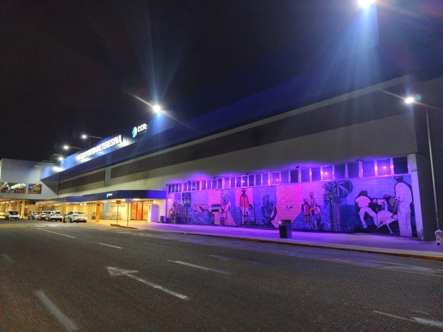 Com a iluminação especial, o Aeroporto de Teresina se une a diversos pontos da cidade que também aderiram à cor símbolo da campanha, demonstrando que juntos é possível multiplicar mensagens de esperança e cuidado.