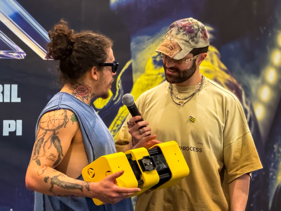 O encontro aconteceu durante coletiva de imprensa concedida por Alok, em Teresina, nesta quarta-feira (22), quando o artista falou sobre a turnê, a carreira e a conexão com o público. A chegada de Whindersson com o equipamento foi uma surpresa para os jornalistas presentes. Ao lado do DJ, ele apresentou o objeto, detalhando suas funcionalidades e proposta.