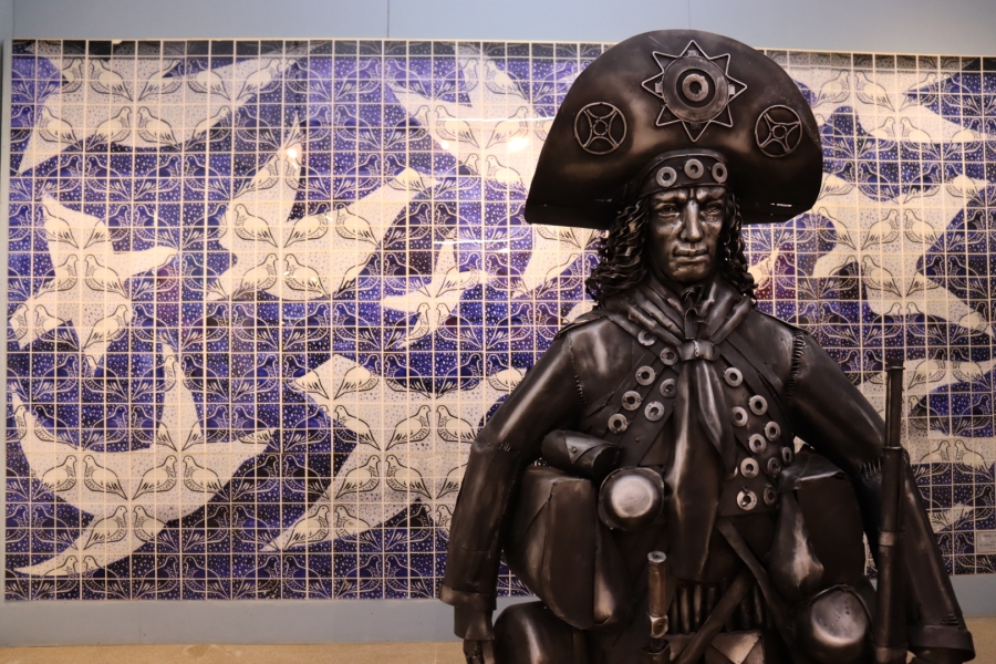 Um dos grandes destaques do espaço é um painel de oito metros (imagem) do artista plástico Batista, natural de Pedro II, que retrata elementos marcantes do sertão nordestino.