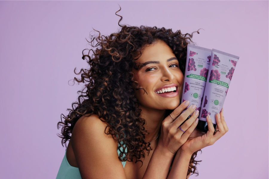 Entre os destaques, o creme de pentear Feira Cachos de Uva garante definição por até 72 horas e controle do frizz. Sua fórmula proporciona curvas hidratadas, macias, brilhosas e com pontas saudáveis, graças ao efeito memorizador de curvatura. A linha ainda inclui shampoo que limpa sem ressecar, condicionador que hidrata e desembaraça e uma máscara de tratamento profundo que devolve a força dos fios, tudo pensado para realçar a beleza natural dos cachos com leveza e performance.